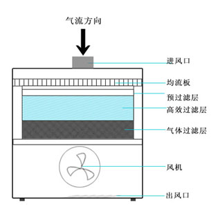 2.主過濾層過濾梯度設(shè)置:初中效過濾+HEPA高效過濾。凈化顆粒直